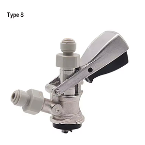 Pistola para llenado de botellas. Tiene entrada de CO2 y de liquido.